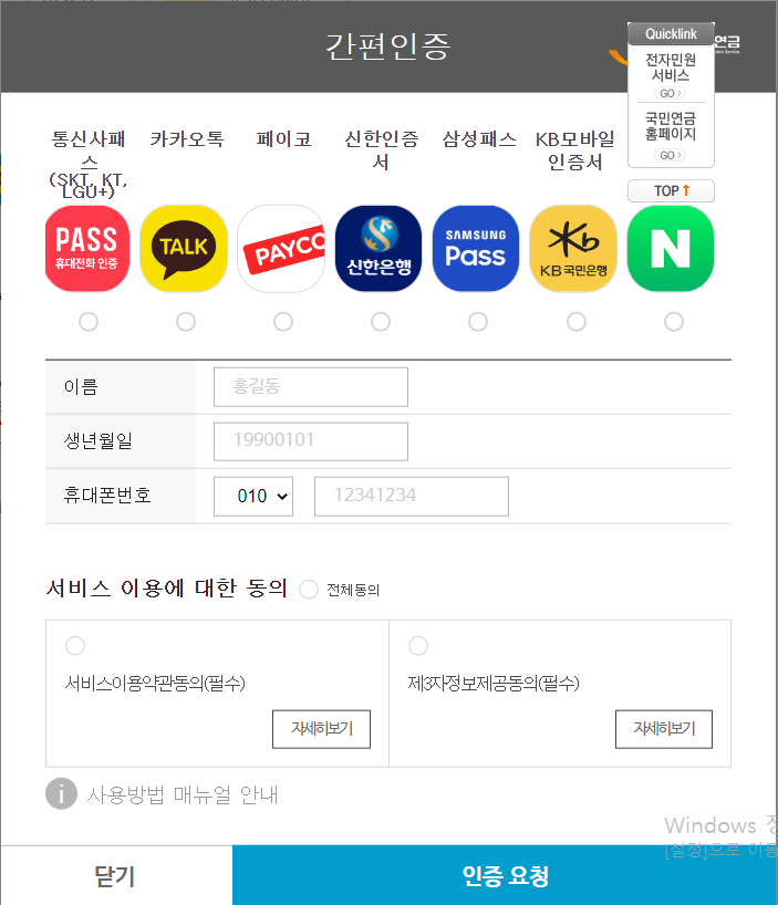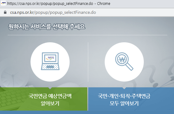 예상 연금액 조회를 누르시게 되면 아래의 팝업창이 뜨게 되고, 여기에서 왼쪽을 누르면 됩니다.