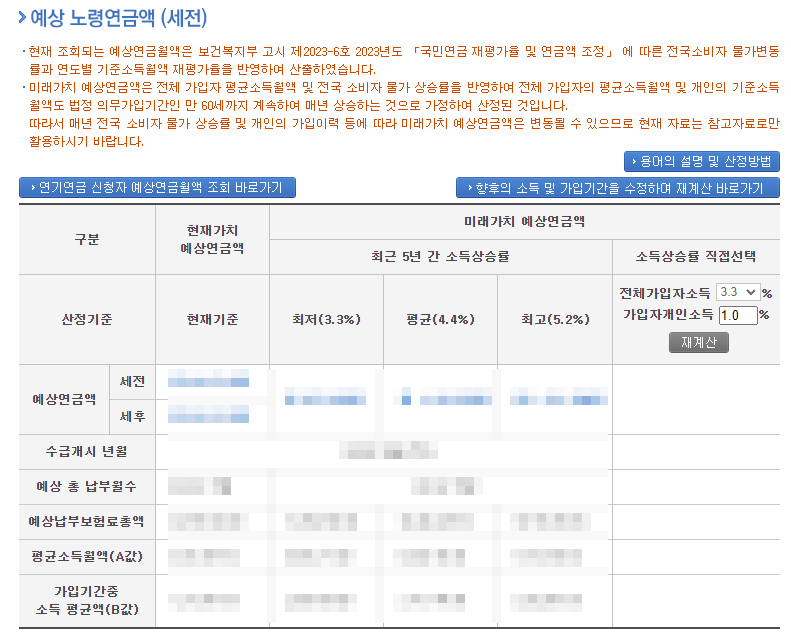 아래 링크를 따라서 들어가시게 되면 예상 연금액 조회 버튼이 있습니다. 예상 연금액 조회를 누르게 되면 "국민연금 예상 연금액 알아보기" 가 뜨게 됩니다.